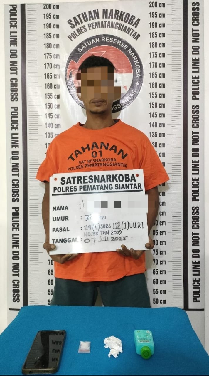 RMN, Siantar – Satuan Reserse Narkoba Polres Pematangsiantar menangkap HP (38) warga Jalan Manunggal Nagur Belakang Kelurahan Martoba Kecamatan Siantar utara Kota Pematangsiantar membawa narkotika jenis sabu berat bruto 1,37 gram pada hari Senin 7 Juli 2025 malam sekira pukul 19.30 WIB.