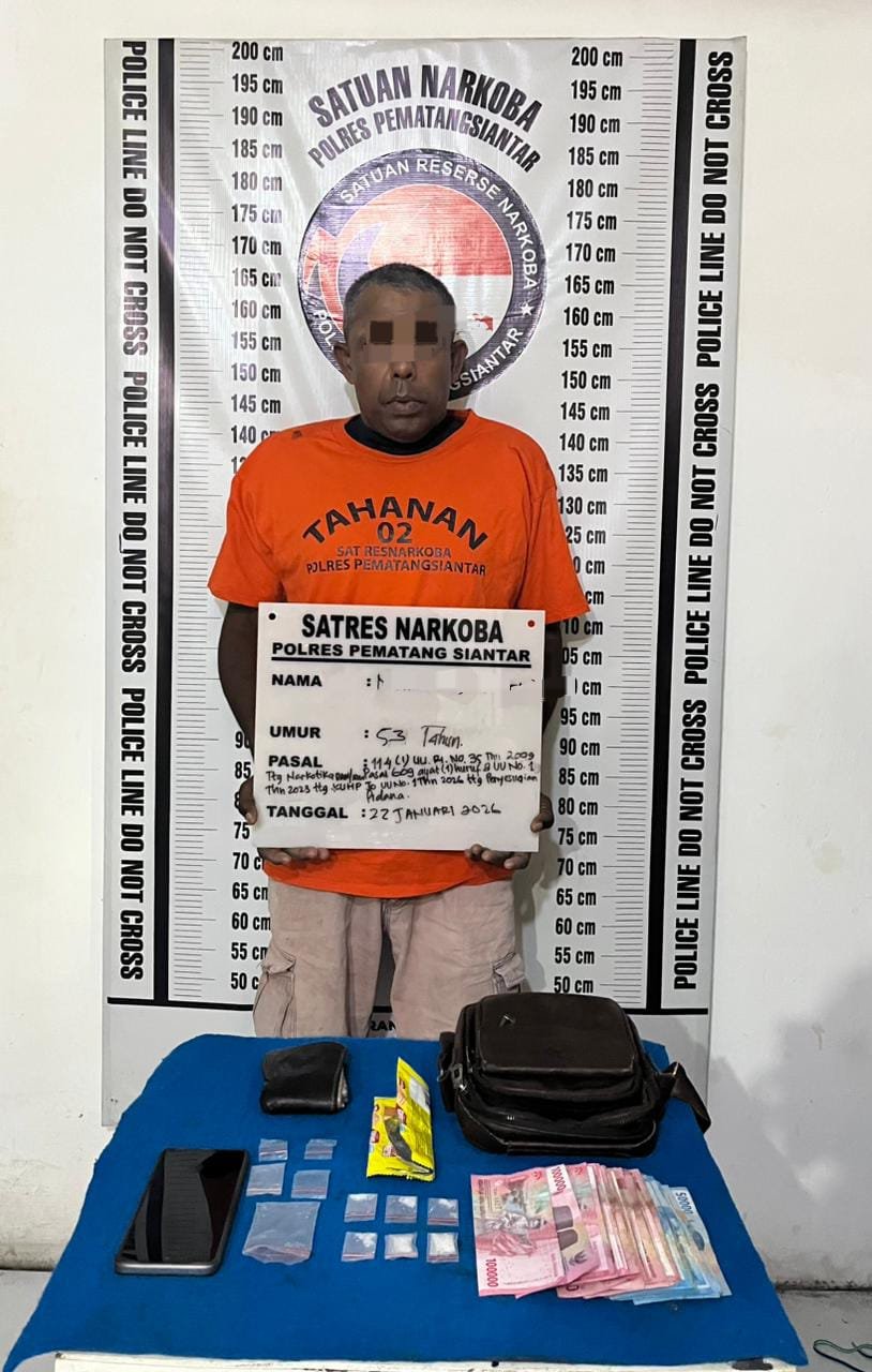 RMN, Siantar – Polres Pematangsiantar melalui Satuan Reserse Narkoba berhasil mengungkap kepemilikan 6 paket narkotika jenis sabu di Jalan Sabang Merauke Gang Davit Kelurahan Simalungun Kecamatan Siantar Selatan Kota Pematangsiantar, pada Kamis 22 Januari 2026 dini hari sekira pukul 00.15 WIB.