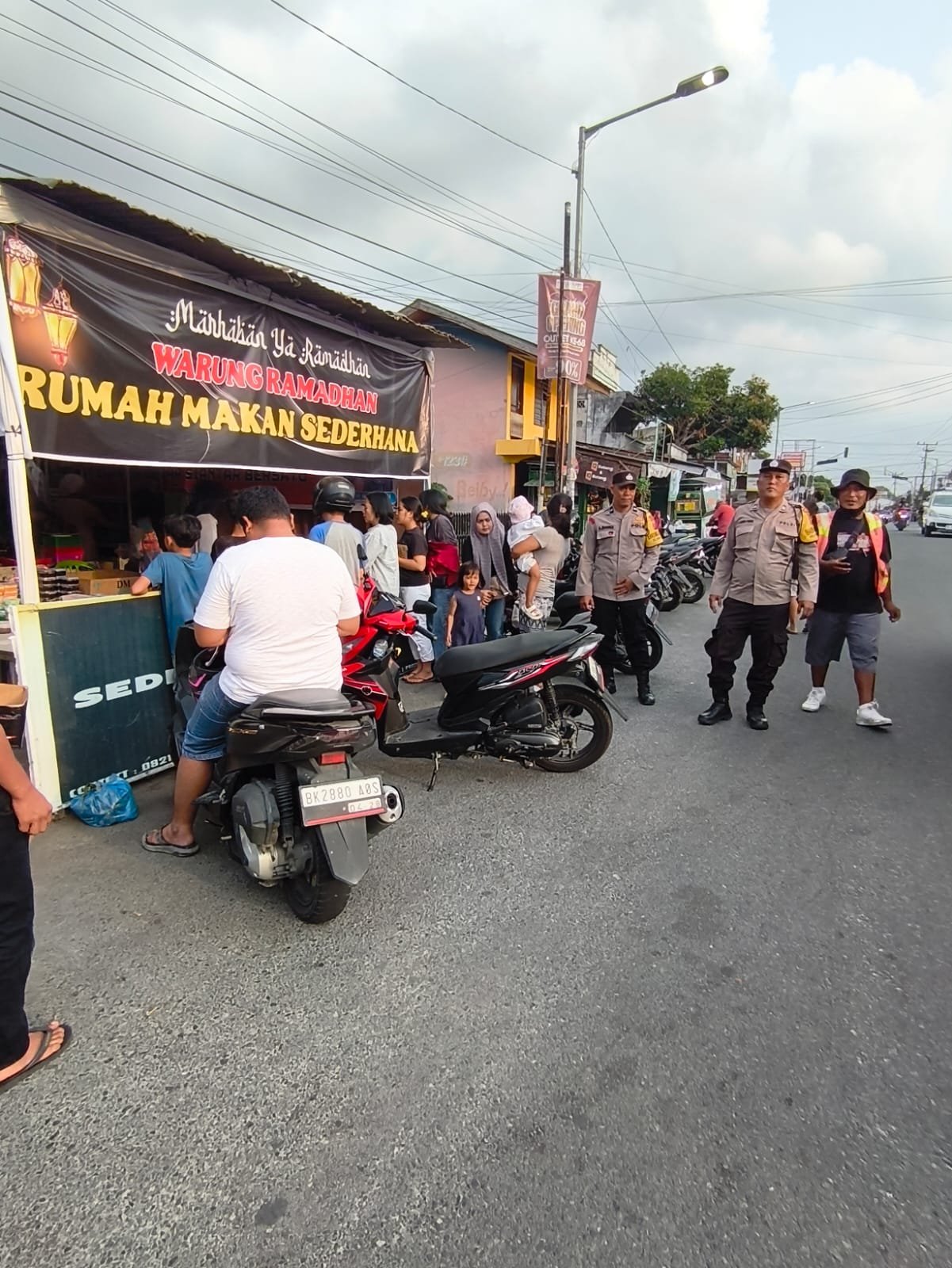 RMN, Siantar – Polsek Sianțar Marihat Polres Pematangsiantar melalui Aiptu SM Purba bersama piket Bhabinkamtibmas Aipda Ijon Rotuah Saragih dan Aipda Adilman Manalu melaksanakan patroli lokasi penjualan takjil di Jalan Melanthon Siregar Kecamatan Siantar Marihat Kota Pematangsiantar, pada Minggu 22 Februari 2026 sore pukul : 16.50 Wib.
