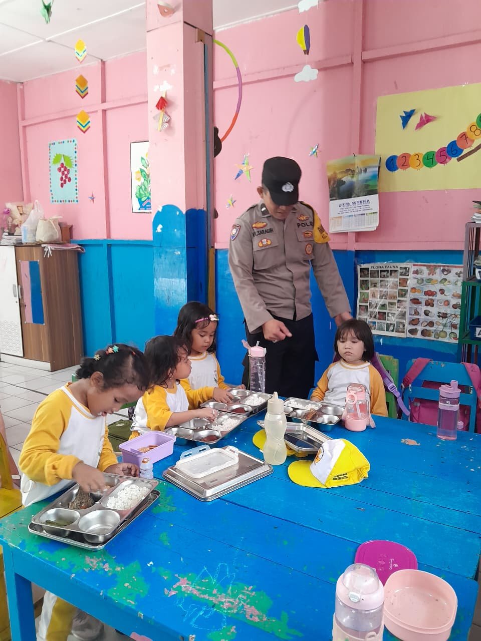 Bhabinkamtibmas Polsek Siantar Timur Monitoring Distribusi MBG di Taman TK Kemala Bhayangkari