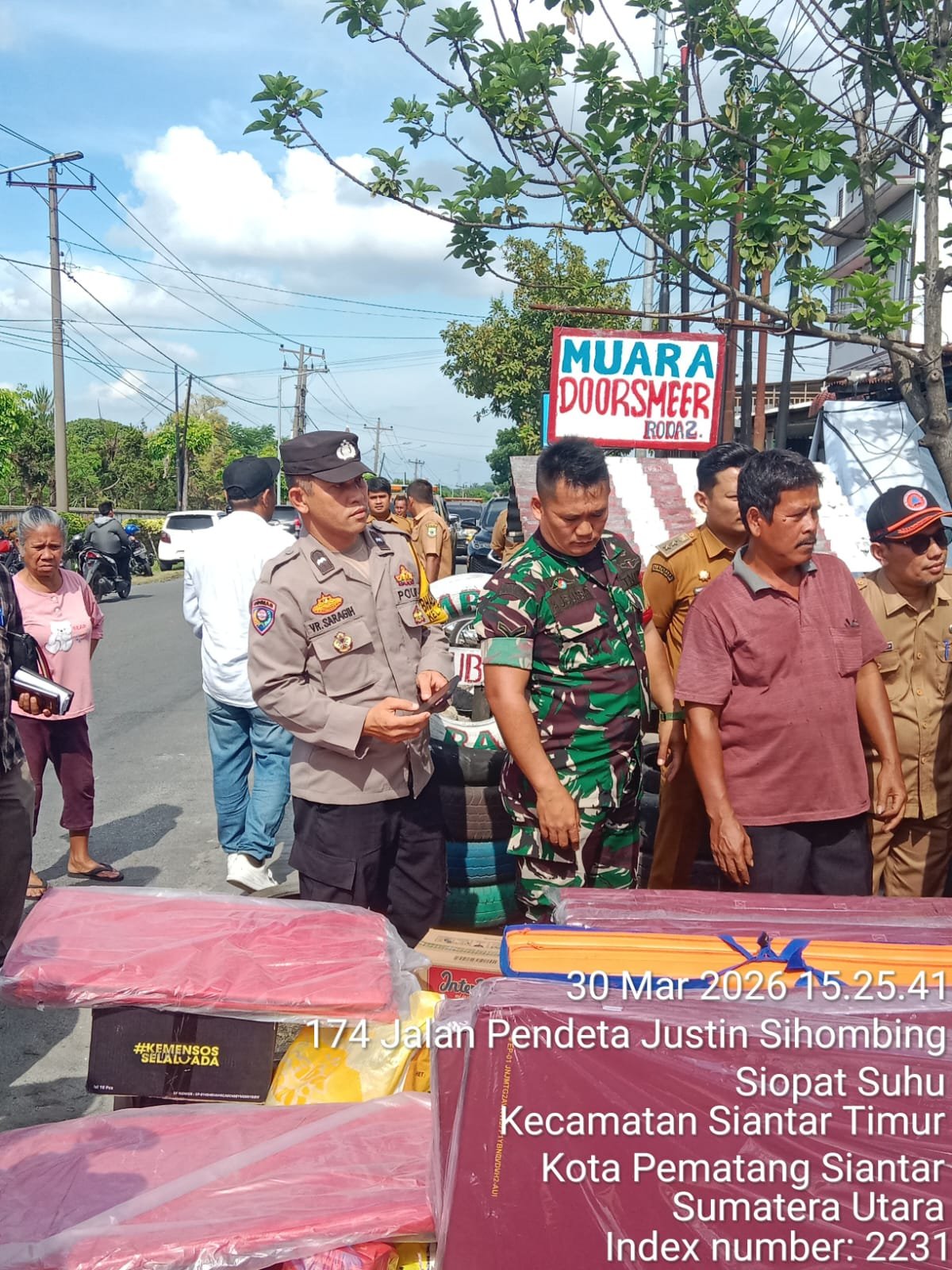RMN, Siantar – Polsek Siantar Timur Polres Pematangsiantar melalui Bhabinkamtibmas Kelurahan Siopat Suhu Aipda Vicktorson S. Garingging S.T melaksanakan monitoring pemberian bantuan kepada warga kebakaran rumah di Jalan Pdt. Justin Sihombing Kelurahan Siopat Suhu Kecamatan Siantar Timur Kota Pematangsiantar, pada Senin 30 Maret 2026 sore sekira pukul : 15.40 Wib.