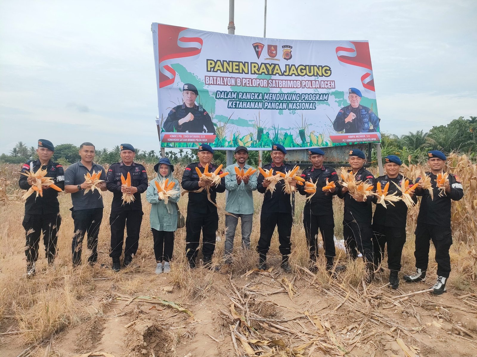 Komandan Batalyon B Pelopor, Kompol Muzakkir,S.H di dampingi Danki 1 Batalyon B Pelopor AKP H Asmawardi serta PJU Batalyon B Pelopor melaksanakan pemanenan jagung setelah pelaksanaan apel pagi dan beliau menyampaikan bahwa panen ini merupakan bagian dari pelaksanaan instruksi pimpinan satuan dalam rangka mendukung program pemerintah, khususnya dalam menjaga ketersediaan pangan di wilayah Lhokseumawe dan Aceh Utara.