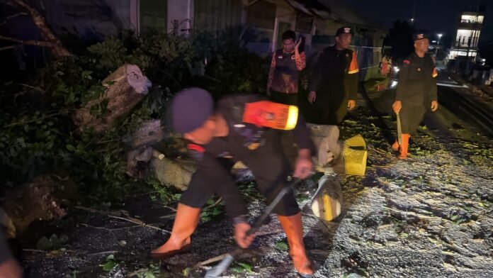 Brimob Polda Sumut Sigap Evakuasi Pohon Tumbang, Wujud Nyata Kehadiran Ditengah Masyarakat Pematang Siantar