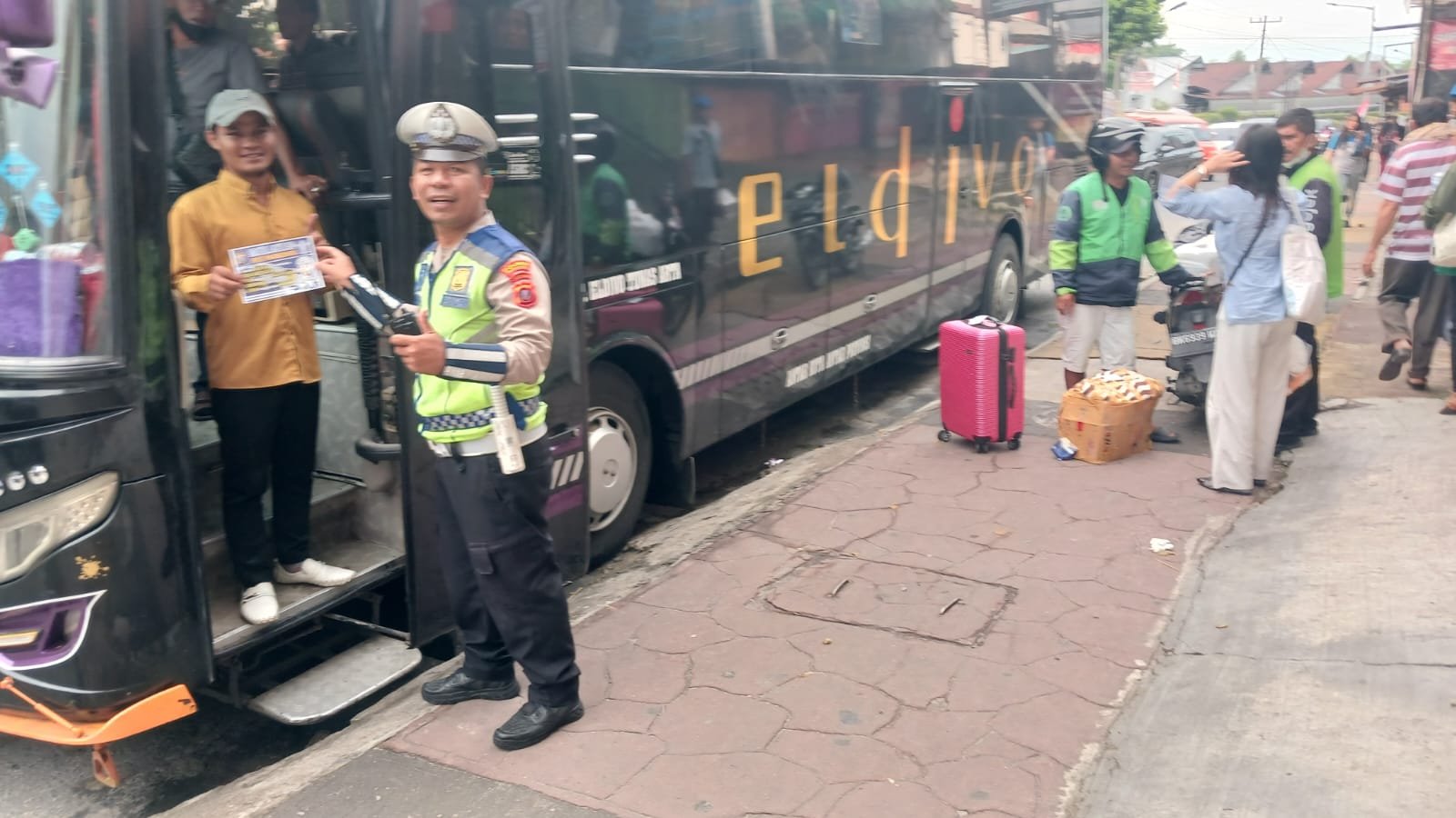 Selain bagikan brosur, personil Unit Kamsel juga memberikan himbauan dan edukasi kepada mandor agar merapikan parkiran bus yang ngetem, serta menghimbau para pengendara agar tidak sembarangan memarkirkan kendaraannya pada saat mengantar dan menjemput penumpang bus sehingga tidak terjadi kemacetan yang panjang.