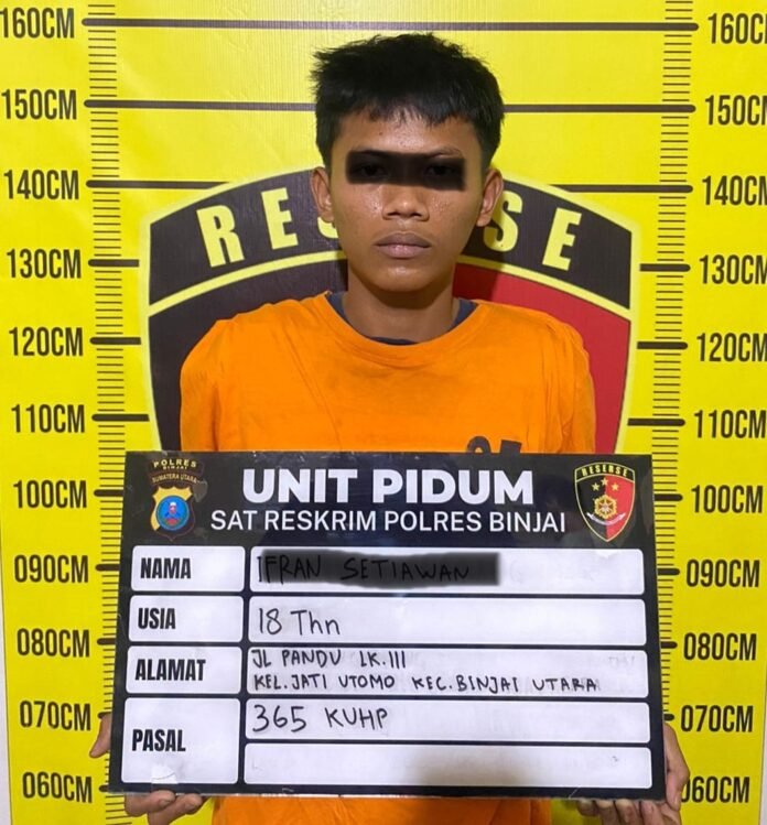 Hasil penyidikan oleh Tim Cobra dibawah pimpinan kasat Reskrim Akp Hizkia C.P. Siagian, S.T.K., S.I.K. M.Si, berhasil mengendus keberadaan kedua terduga pelaku sehingga berhasil melakukan penangkapan terhadap MI als KOJEK (18) dan IS als BAGONG(18) di jalan Randu Lk. III Kelurahan Jati utomo Kecamatan Binjai Utara, kota Binjai.