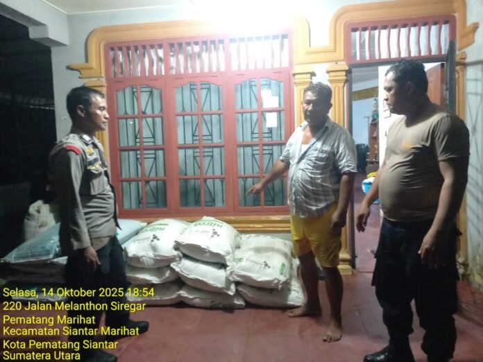 RMN, Siantar – Kapolsek Siantar Marihat AKP Doni Simanjuntak SH diwakili Kanit Intelkam IPDA Edison Sitohang bersama Bhabinkamtibmas mendistribusikan bantuan pupuk kepada masyarakat, Bapak Kompol Purn. P. Hutasoit di Jalan Melanthon Siregar Gang Kuku Balam, kelurahan Pematang Marihat, Kecamatan Siantar Marimbun Kota Pematangsiantar, pada Selasa 14 Oktober 2025 sore sekira pukul : 16.00 Wib.