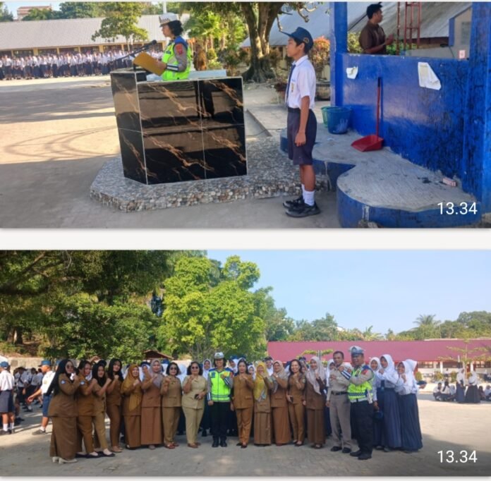 Edukasi Tertib Berlalulintas, Sat Lantas Polres Pematang Siantar Pembina Upacara Bendera di SMP N. 2