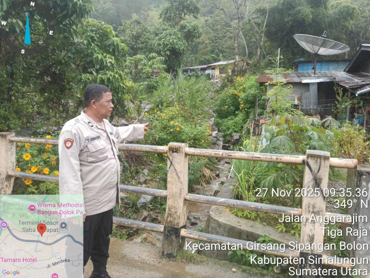 RMN, Simalungun – Ditengah hujan deras yang mengguyur kawasan Parapat, Kamis (27/11/2025), dua personil Polsek Parapat, Aiptu Tumpak Sinaga dan Tagor Efendi, nekat turun ke lapangan sejak pukul 09.30 WIB. Mereka menyisir titik-titik rawan bencana longsor dan banjir untuk memastikan keselamatan masyarakat di musim hujan ekstrem ini.