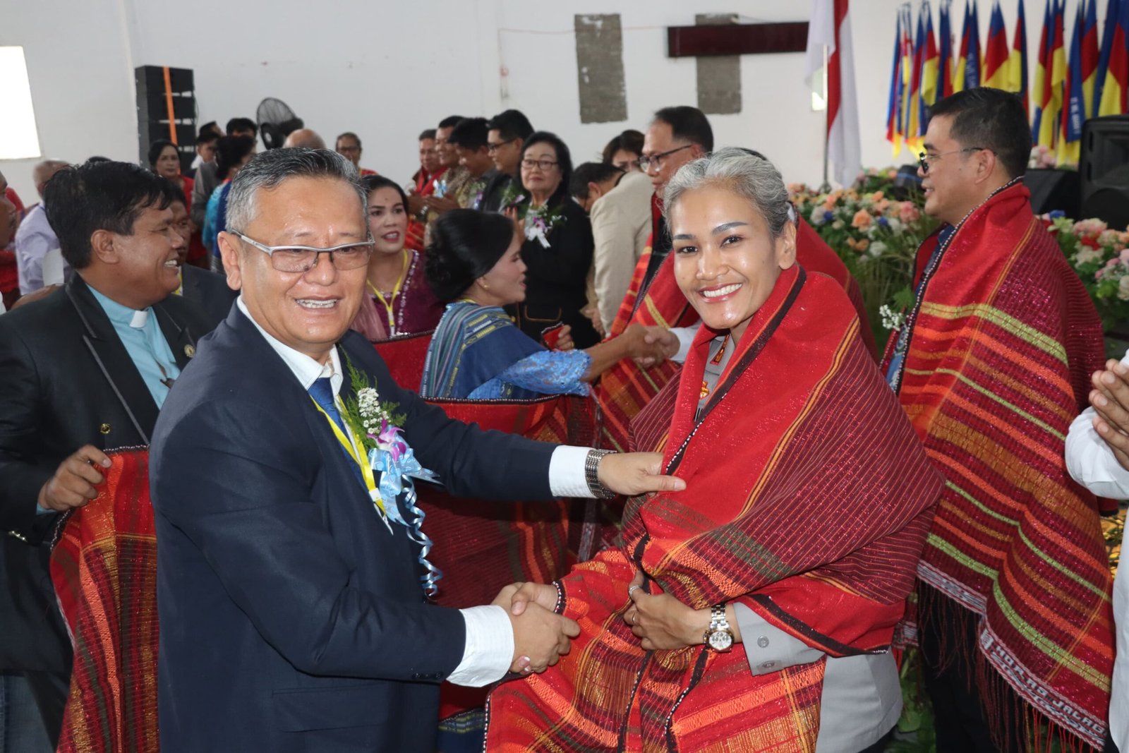 Ketua PGPI Pusat Pdt. Dr. Jason Balompapeung, Dirjen Bimas Kristen Kementrian Agama R.I Dr. Jeane Marie Tulung, S.Th. M.Pd.K, Bimas Kristen Kemenag Provinsi Sumatera Utara (Kabid)