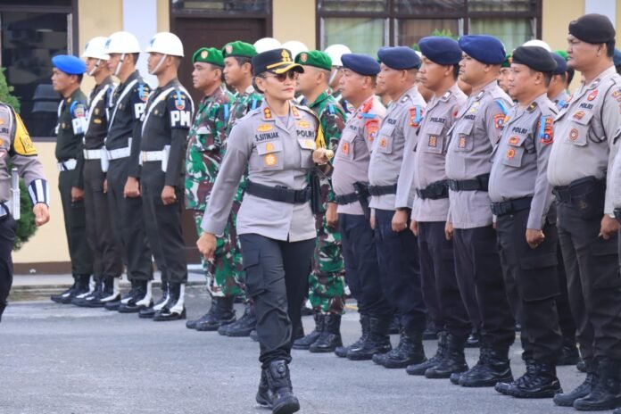 Tampak apel gelar pasukan tersebut diikuti Wakapolres Kompol Hendrik Situmorang, MM, mewakili Brimob Kompi 2 Yon B IPTU Syahputra Siregar S.Sos, Para Pejabat Utama (PJU) Polres Pematangsiantar, Para Pers Kodim 0207/Simalungun, Para Personil Denpom I/1 Pematangsiantar, Para Personil Dinas Perhubungan Pematangsiantar, Para Person Satuan Polisi Pamong Praja (Sat Pol PP) Pematangsiantar dan Para Personil yang Tersprint Polres Pematangsiantar.(*/Rudi)