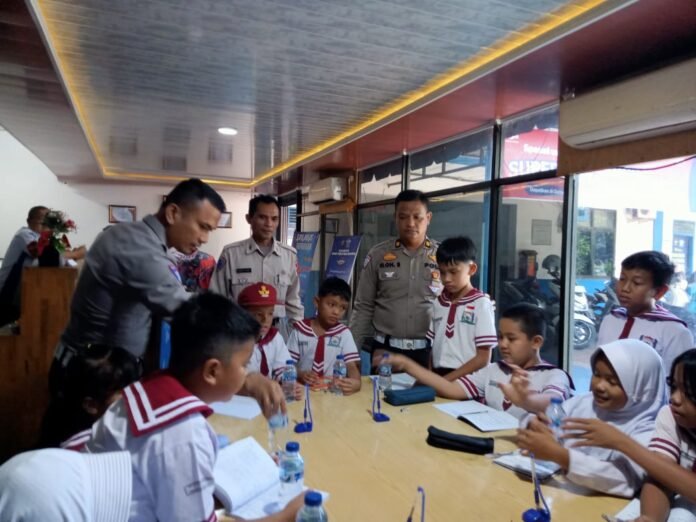 RMN, Siantar – Kepala Satuan Lalu lintas (Kasat Lantas) IPTU Friska Susana SH bersama Kanit Regident IPTU Elon Sitinjak SH menerima kunjungan siswa siswi SD Swasta Kartini Handayani ke Kantor Sat Lantas, Jl. Sangnawaluh, Kelurahan Siopat Suhu, Kecamatan Siantar Timur, Kota Pematangsiantar, pada Rabu 17 September 2025 pagi sekira pukul 10.00 Wib.