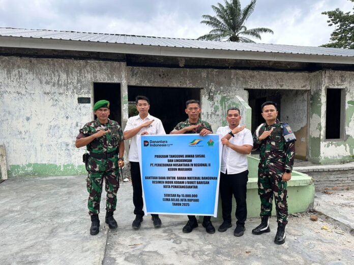 PT Perkebunan Nusantara IV (PTPN IV) Regional II Kebun Marjandi menyalurkan bantuan Tanggung Jawab Sosial dan Lingkungan (TJSL) untuk membantu pembangunan atau perbaikan Rumah Dinas personel Rindam I Bukit Barisan akibat musibah kebakaran, sebanyak 6 Unit. Bantuan diserahkan di Resimen Induk Kodam I/Bukit Barisan Detasemen Markas Pematang Siantar, Jl. Perdana, Setia Negara, Kecamatan Siantar Sitalasari, Rabu (12/11/25).