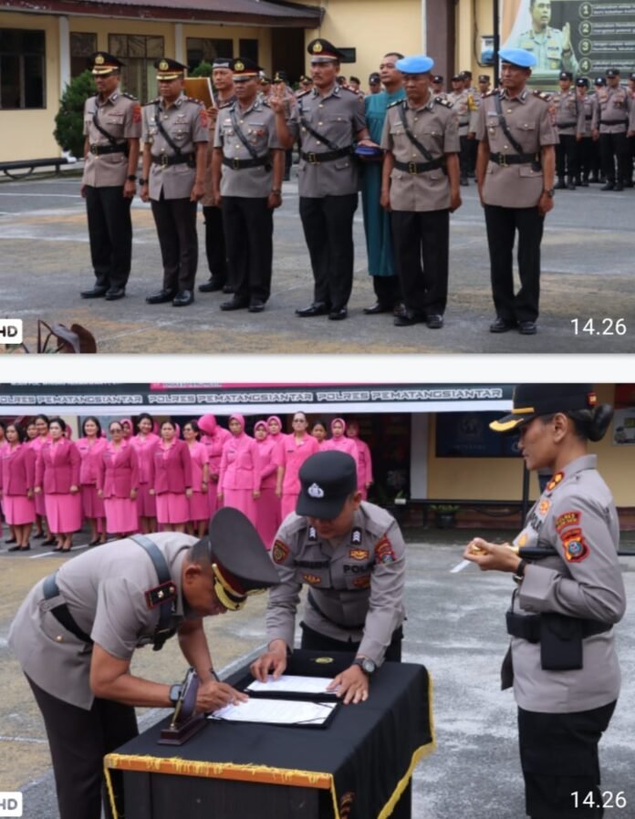 RMN, Siantar – Bertempat di lapangan apel, Kapolres Pematangsiantar AKBP Sah Udur T.M. Sitinjak SH. SIK. MH memimpin serah terima jabatan (Sertijab) Wakapolres, Kapolsek Siantar Martoba dan Kasi Propam, pada hari Senin 13 Oktober 2025 sore sekira pukul : 15.30 Wib.