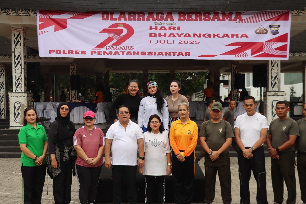 Menyambut Sambut Hari Bhayangkara ke 79, Polres Pematangsiantar menggelar Olahraga Bersama TNI dan Masyarakat di Lapangan Haji Adam Malik Kelurahan Proklamasi, Kecamatan Siantar Barat, Kota Pematangsiantar, pada Selasa 24 Juni 2025 pagi pukul : 07.00 Wib.