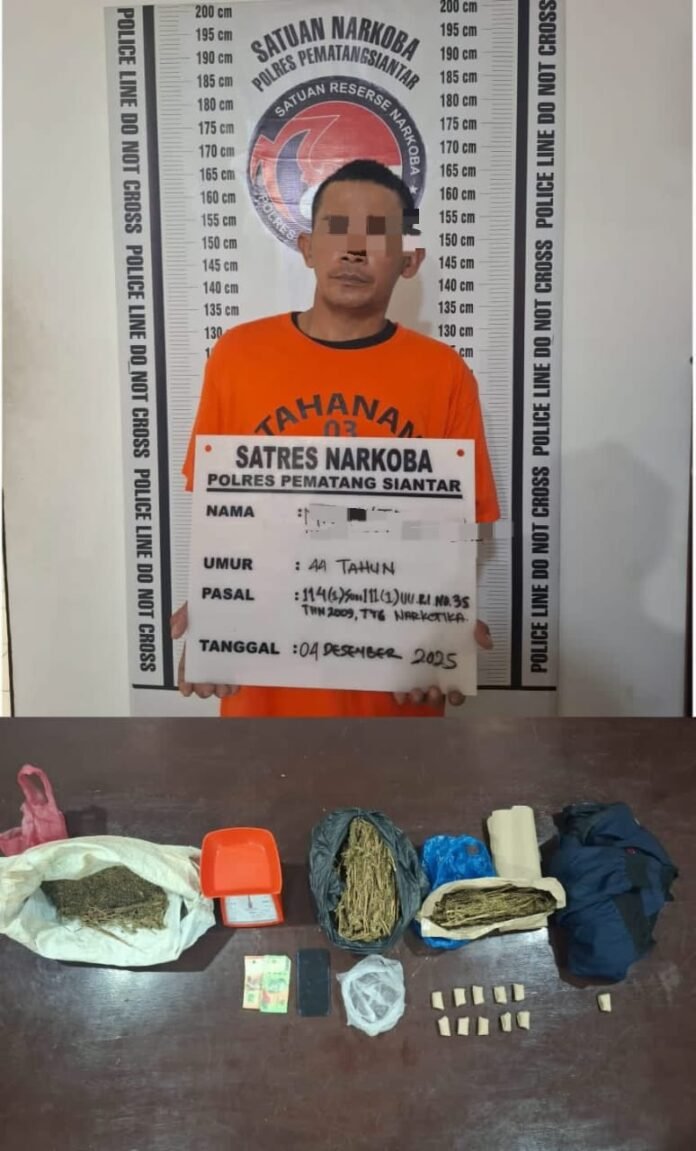 RMN, Siantar – Polres Pematangsiantar melalui Satuan Reserse Narkoba berhasil mengungkap kepemilikan narkotika jenis ganja berat bruto 1,13 Kg di pinggir jalan Jalan Sangnawaluh Kelurahan Siopat Suhu Kecamatan Siantar Timur Kota Pematangsiantar, pada hari Kamis 4 Desember 2025 sore sekira pukul 17.30 WIB.
