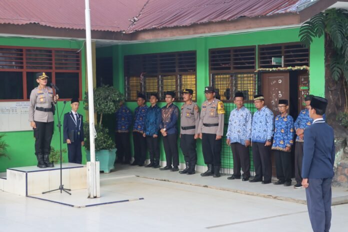 RMN, Siantar – Kapolres Pematangsiantar AKBP Sah Udur T.M. Sitinjak SH. SIK. MH hadir menjadi pembina upacara dalam rangkaian pelaksanan kegiatan Police Go To School di Sekolah MTsN (Madrasah TSanawiyah Negeri) Kota Pematangsiantar, Jalan Medan Simpang Kapuk Kelurahan Tanjung Tongah Kecamatan Siantar Martoba, pada hari Selasa 28 Oktober 2025 pagi pukul : 07.15 Wib.