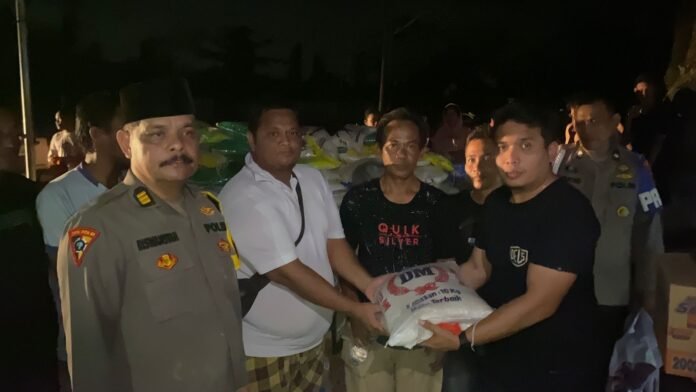 Sekira pukul 20.00 Wib. personil Polres Binjai yang membawa bantuan tiba di Desa Alur Cucur Kec. Rantau Kab. Aceh Tamiang untuk selanjutnya bantuan diserahkan secara simbolis oleh yang mewakili Kapolres Binjai yakni Kasat Reskrim AKP Hizkia Yosia C.P Siagian kepada Kades Alur cucur dengan disaksikan masyarakat setempat
