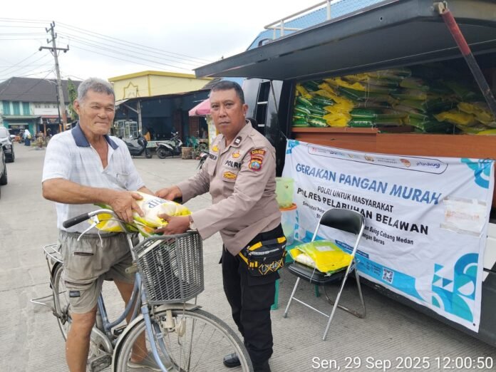 RMN, Belawan – Polres Pelabuhan Belawan pada Senin, 29 September 2025 melaksanakan kegiatan Gerakan Pangan Murah Polri dengan menjual beras SPHP dari Bulog kepada warga di Jalan Selebes, Kelurahan Belawan II. Kegiatan ini disambut antusias masyarakat yang berbondong-bondong membeli beras berkualitas baik dengan harga terjangkau.