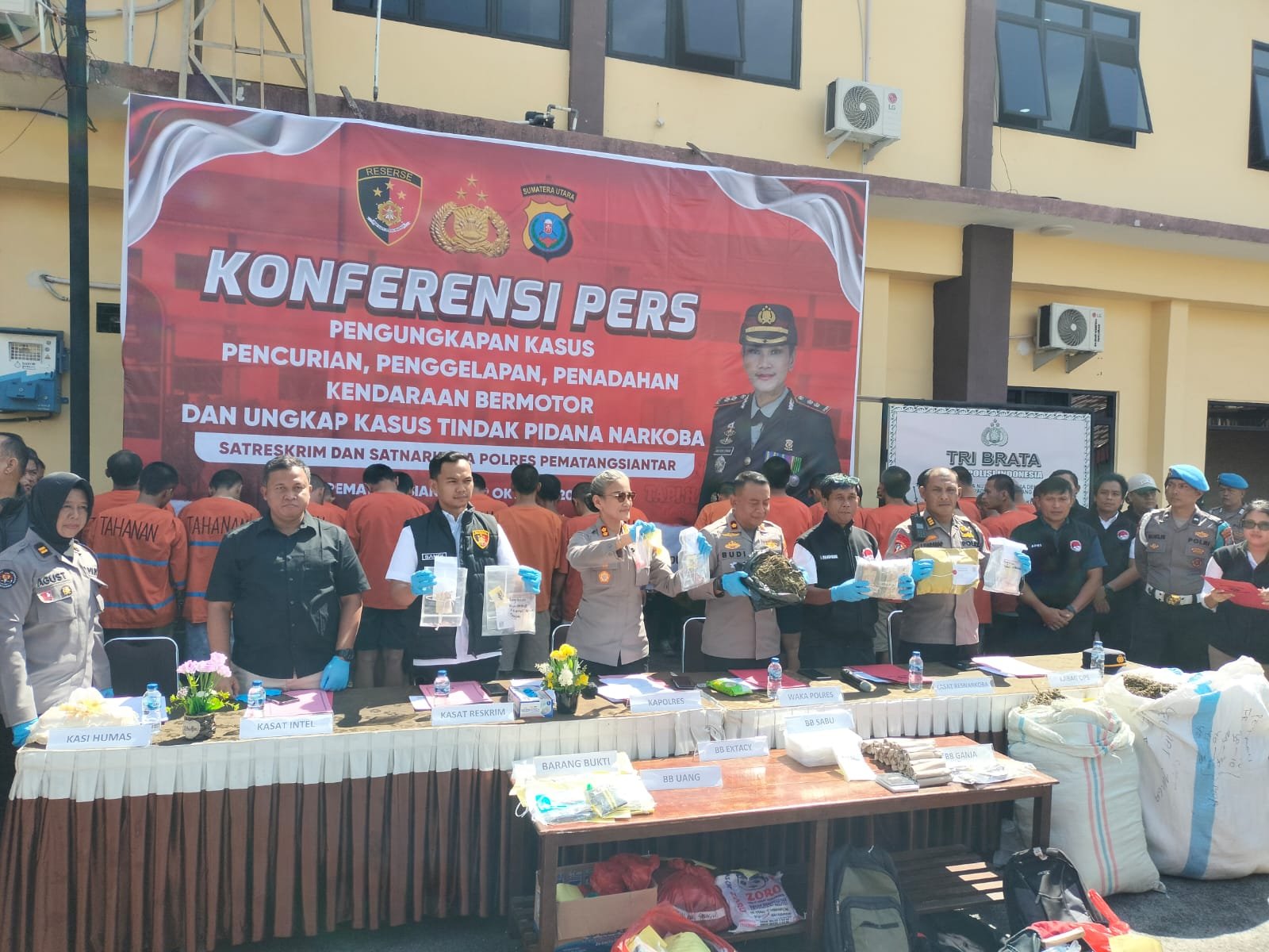 RMN, Siantar – Kapolres Pematangsiantar AKBP Sah Udur SH. SIK. MH pimpin Konferensi Pers keberhasilan pengungkapan Kasus Pencurian, Penggelapan, Penadahan Ranmor dan Narkotika, pada hari Rabu 29 Oktober 2025 pagi sekira pukul : 09.00 Wib.