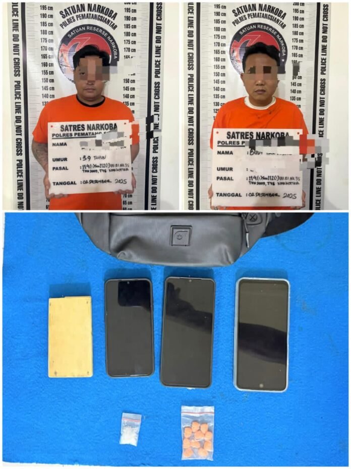 RMN, Siantar – Polres Pematangsiantar melalui Satuan Reserse Narkoba berhasil menangkap dua orang residivis miliki narkotika jenis sabu dan ekstasi di Jalan Kotanopan Kelurahan Timbang Galung Kecamatan Siantar Barat, Kota Pematangsiantar, pada Selasa 2 Desember 2025 siang sekira pukul 14.00 WIB.