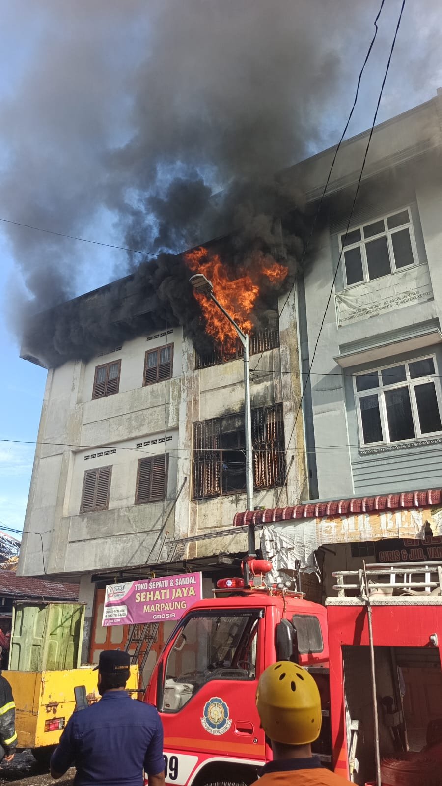 Kebakaran tersebut diketahui satu unit Ruko Sandal Sepatu Sehati Jaya Marpaung Grosir milik korban JH (58).