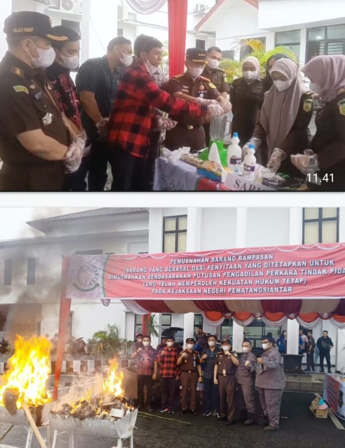 Pemusnahan barang bukti yang diselenggarakan melalui Seksi Pemulihan Aset dan Pengelolaan Barang Bukti (PAPBB) tersebut dipimpin langsung Kepala Kejaksaan Negeri (Kajari) Pematangsiantar Erwin Purba SH serta turut juga dihadiri perwakilan Badan Narkotika Nasional (BNNK) Kota Pematangsiantar, Kasi PAPBB Belman Tindaon SH, para Kasi, Jaksa dan pegawai Kejari Pematangsiantar.
