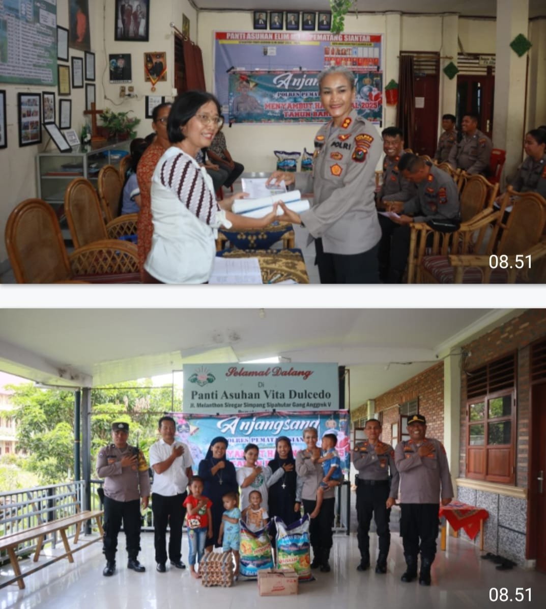 RMN, Siantar – Dalam rangka menyambut Perayaan Natal 25 Desember tahun 2025 dan Tahun Baru 1 Januari Tahun 2026, Polres Pematangsiantar menggelar anjangsana ke dua Panti Asuhan yang ada di Kota Pematangsiantar, Selasa 9 Desember 2025 siang sekira pukul 11.00 Wib.