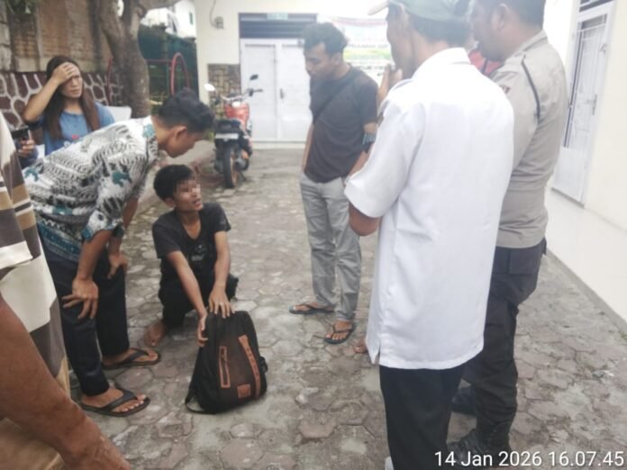 RMN, Siantar – Polres Pematangsiantar melalui personil piket Polsek Sianțar Martoba gerak cepat respon laporan masyarakat dengan mengamankan seorang laki laki diduga pelaku pencurian meteran air di Jalan Rajawali Gang Surga Kelurahan Simarito Kecamatan Siantar Barat Kota Pematangsiantar, Rabu 14 Januari 2026 pukul 14.00 WIB.