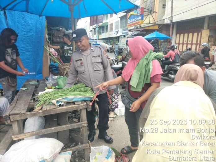 RMN, Siantar – Polsek Siantar Barat Polres Pematangsiantar melalui Kasub Sektor Pasar Horas Aiptu Edi Syahputra SH melaksanakan monitoring penertiban Pedagang Kaki Lima (PKL) yang digelar Satpol PP diseputaran Jalan Imam Bonjol, Kelurahan Dwikora Kecamatan Siantar Barat Kota Pematangsiantar, pada Kamis 25 September 2025 siang pukul 11:00 Wib.