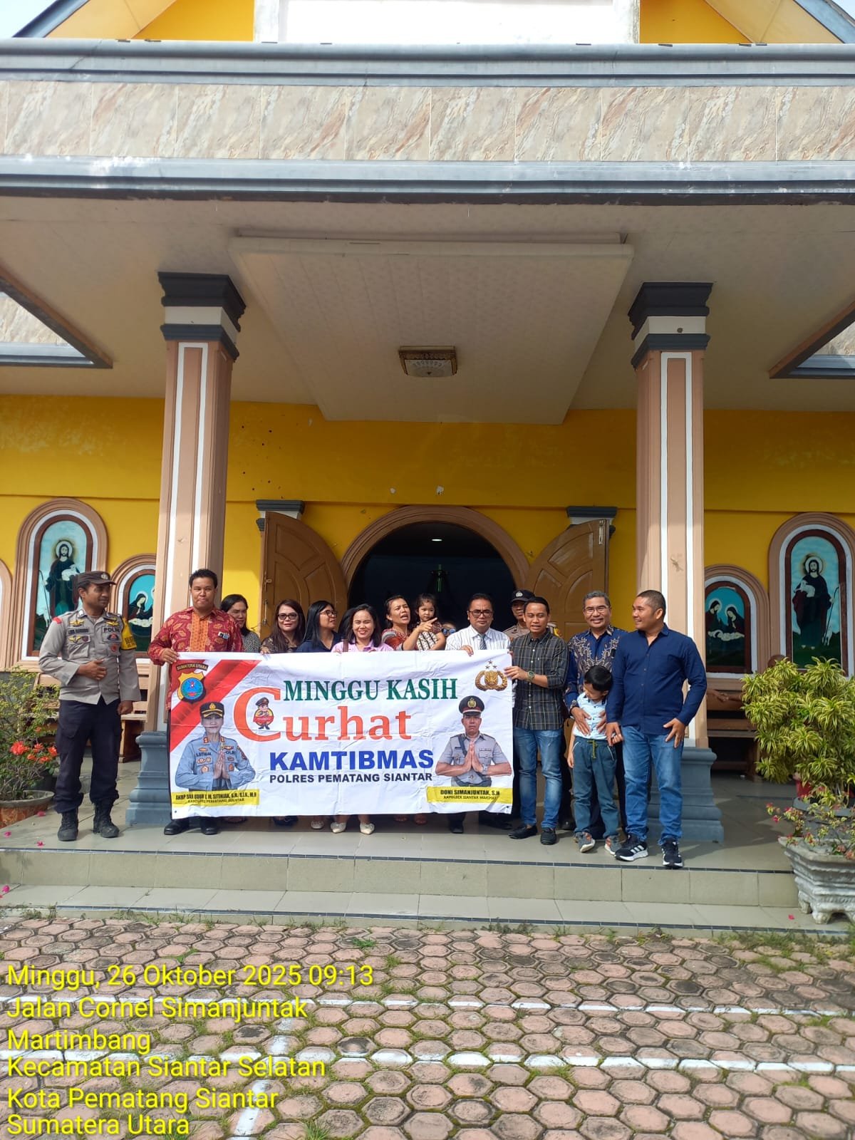 RMN, Siantar – Polsek Siantar Marihat Polres Pematangsiantar melalui Piket Bhabinkamtibmas menggelar kegiatan Minggu Kasih Curhat Kamtibmas di Gereja HKBP Jalan Cornel Simanjuntak, Kelurahan Naga Huta Timur Kecamatan Siantar Marimbun Kota Pematangsiantar.