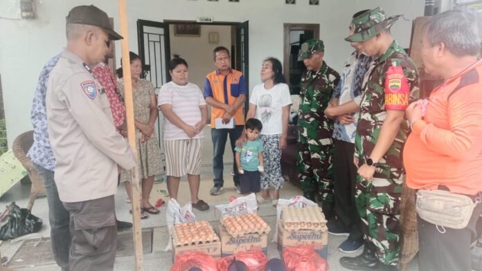 RMN, Siantar – Polsek Siantar Marihat Polres Pematangsiantar melalui Bhabinkamtibmas Kelurahan Nagahuta Timur Aipda F. Munthe melaksanakan pendampingan pembagian bantuan kepada warga terdampak bencana alam angin puting beliung di Jalan D.I Panjaitan Gang Pahala Kelurahan Nagahuta Timur, Kecamatan Siantar Marimbun, Kota Pematangsiantar, pada Kamis 25 September 2025 siang pukul : 12 .30 Wib.