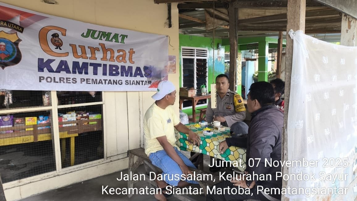 RMN, Siantar – Polseķ Siantar Martoba Polres Pematangsiantar melalui Bhabinkamtibmas Kelurahan Sumber jaya Aiptu R. Tambunan, Bhabinkamtibmas Kelurahan Pondok sayur Aipda M. Bangun, Bhabinkamtibmas Kelurahan Gurilla Aipda R.A. Saragih menggelar Jumat Curhat Kamtibmas di Kelurahan Pondok Sayur Kecamatan Siantar Martoba Kota Pematangsiantar.