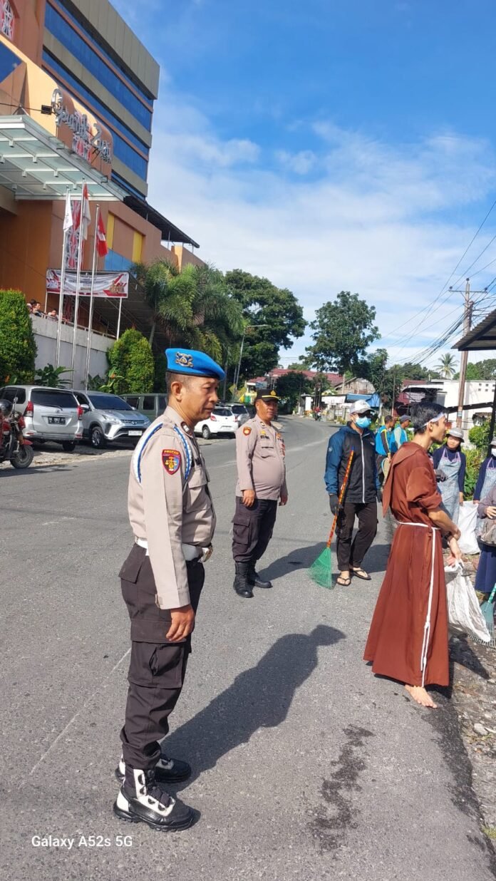 RMN, Siantar – Polres Pematangsiantar melalui personil Polsek Siantar Martoba melaksanakan pengamanan kegiatan Gerak Ekologi (Rawat bumi) dan kebersihan jalan yang digelar Forum Kerjasama Tarekat Hidup Bakti (FK-THB) Keuskupan Agung Medan Vikariat Siantar-simalungun, pada hari Sabtu 18 Oktober 2025 pagi.
