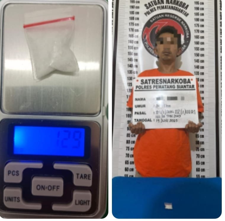 RMN, Siantar – Satuan Reserse Narkoba Polres Pematangsiantar menangkap FA (31) warga Jln. Tanah Jawa Gg. B. Tanjung Kelurahan Melayu Kecamatan Siantar Utara Kota Pematang siantar membawa narkotika jenis sabu berat bruto 1,29 gram di .Jln. Medan Gang Air Bersih Kelurahan Naga pita Kecamatan Siantar Martoba Kota Pematang siantar, pada hari Sabtu (14/6/2025) malam sekira pukul 19.15 WIB.