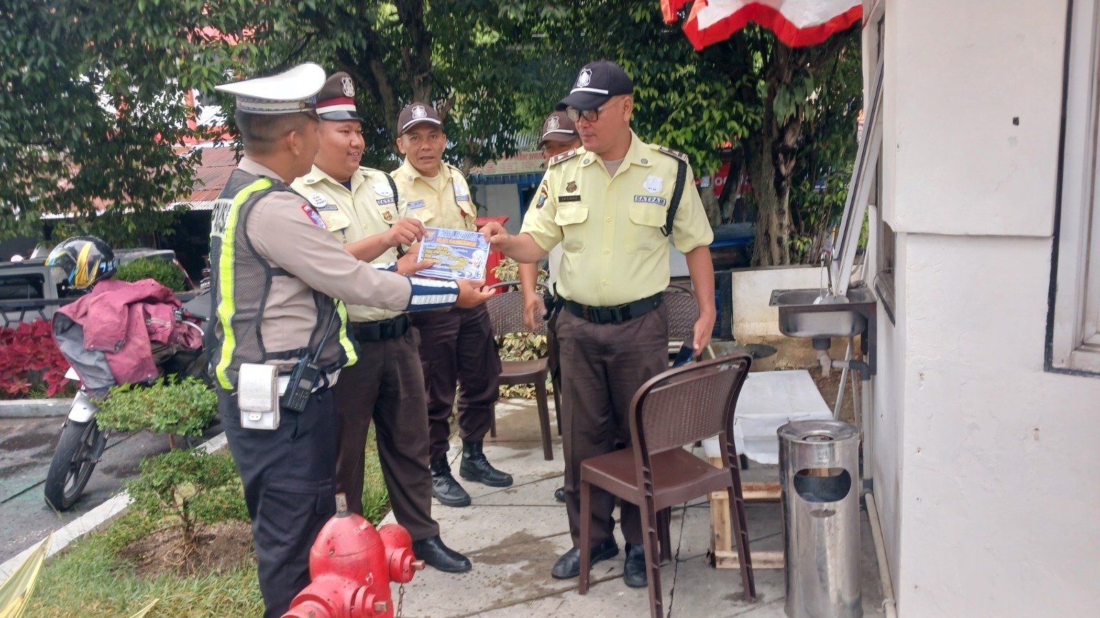 Adapun brosur Tertib Berlalulintas tersebut berisi himbauan diantaranya tidak menggunakan handphone ( HP ) pada saat berkendaraan di jalan raya, memakai sabuk keselamatan pada saat mengemudikan mobil, kendaraan sepeda motor dan menggunakan helm standart SNI pada saat mengendarai sepeda motornya.