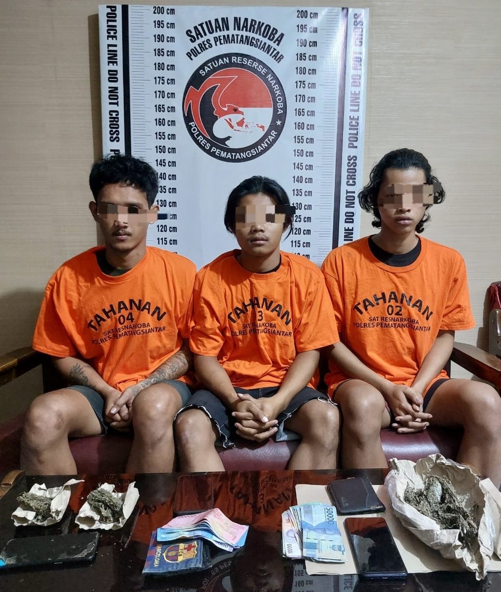 Tiga orang laki laki yang diamankan inisial RY (24) warga Sukamulia Kecamatan Tapian Dolok Kabupaten Simalungun, AC (20) warga Jalan Kolam Kecamatan Tapian Dolok Kabupaten Simalungun dan MRW (20) warga Jalan Gotong Royong Kecamatan Dolok Batu Nanggar Kabupaten Simalungun.
