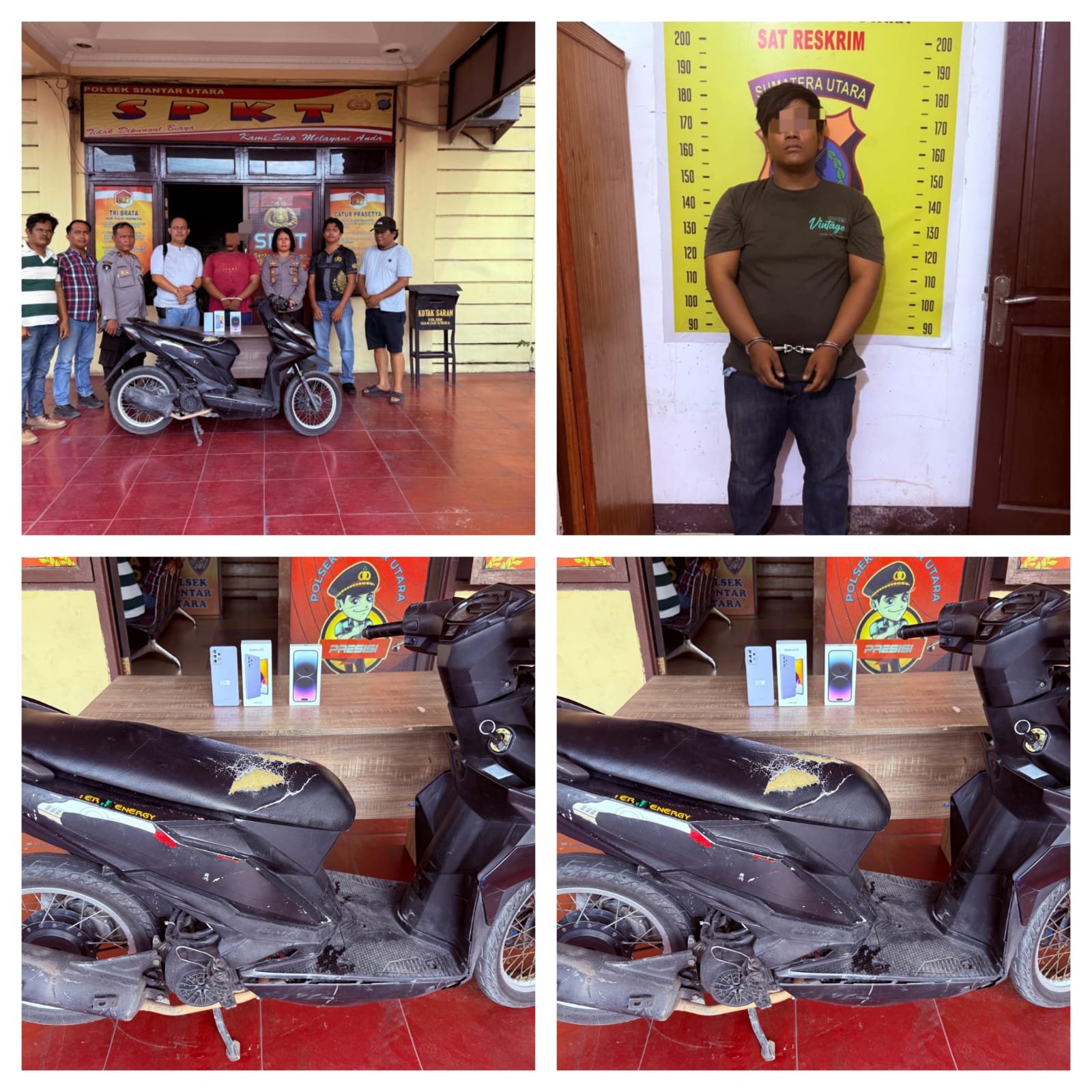 Setelah dilakukan serangkaian penyelidikan dan penyidikan, tempo 2 hari tepatnya pada hari Selasa 24 Februari 2026 malam sekira pukul 21.00 Wib Satreskrim Polsek Siantar utara berhasil mengungkap tindak pidana pencurian tersebut dengan meringkus satu orang pelaku inisial AAG di Jalan Patuan Anggi Kelurahan Pardomuan Kecamatan Siantar Timur Kota Pematangsiantar tepatnya didepan Bilyard Elone dan turut disita barang bukti 1 unit HP Samsung Galaxy A72 256 GB Warna Ungu milik korban dan sepeda motor Honda Beat Warna Hitam tanpa plat nomor polisi.