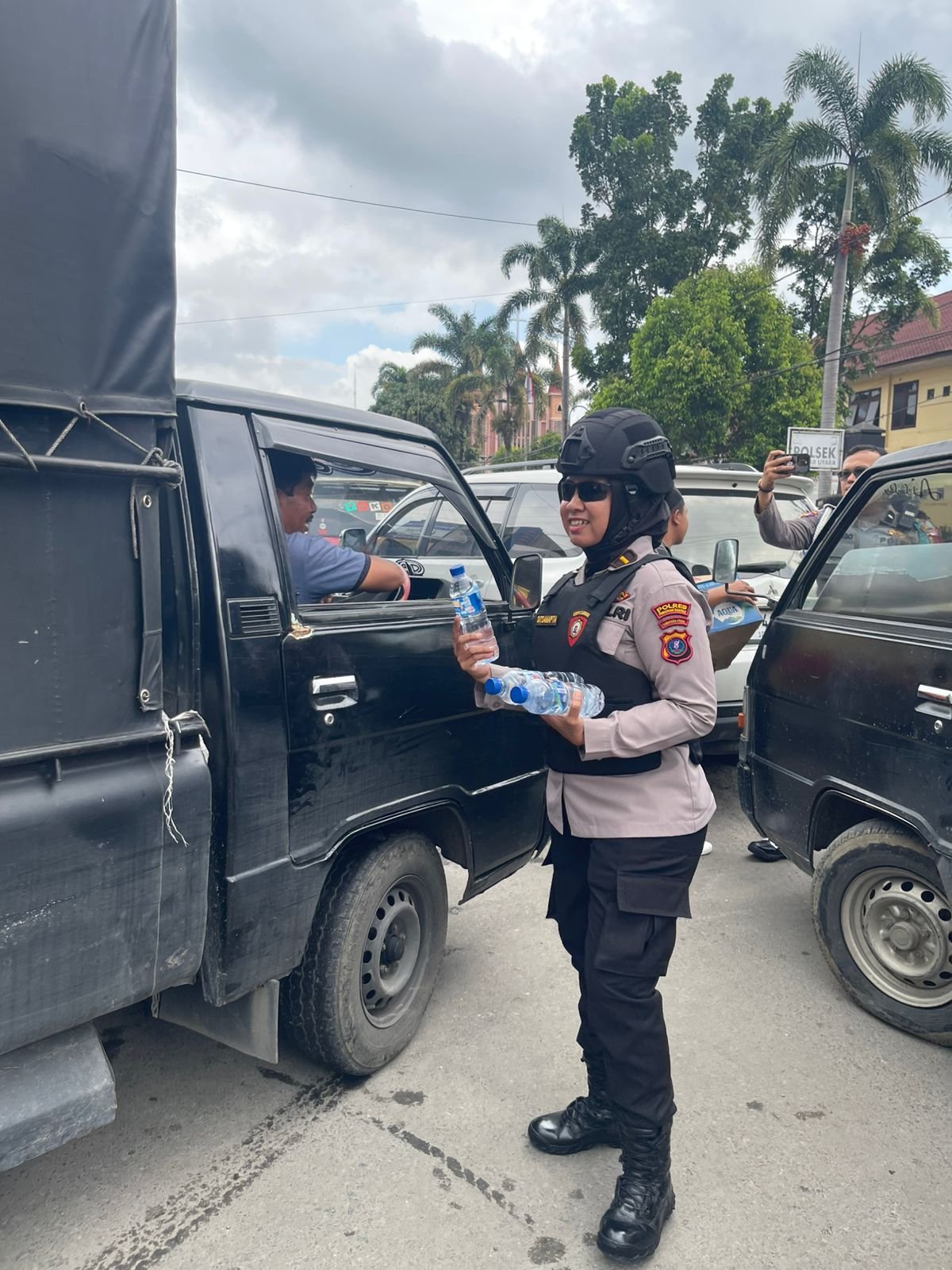 Kemudian Srikandi Polwan juga melakukan patroli dialogis di SPBU yang ada di wilayah hukum Polres Pematangsiantar dan memberikan minuman air mineral kepada pengendara yang antri pengisian Bahan Bakar Minyak (BBM) sembari menyampaikan himbauan agar para pengendara sedang mengantri BBM sabar mengantri dan tertib untuk terciptanya situasi yang kondusif.